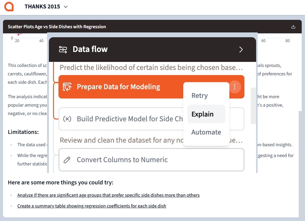 You can explore these details easily—just click the 3-dot icon in each step and select Explain to see a complete breakdown of each step.
